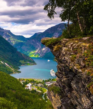 Panoramicas de infartoLa Cascada de las siete hermanas y muchas otras fluyen a raudales por las empinadas laderas de montaña que desembocan en las aguas de color azul brillante del fiordo de Geiranger. Este fiordo, el más famoso de toda Noruega, está protegido por la Unesco como patrimonio de la humanidad. La sorprendente ciudad modernista de Ålesund es un punto de partida perfecto para una aventura en los fiordos. El Noroeste es la zona que ocupa la parte norte de la Noruega de los fiordos y atrae a amantes del aire libre durante todo el año. Åndalsnes, la capital noruega del alpinismo, representa una base de operaciones ideal para explorar la zona. En el Noroeste de los fiordos se encuentran también las localidades de Molde, famosa por su escena de jazz, y Kristiansund, conocida como la capital del pescado seco (o clipfish).