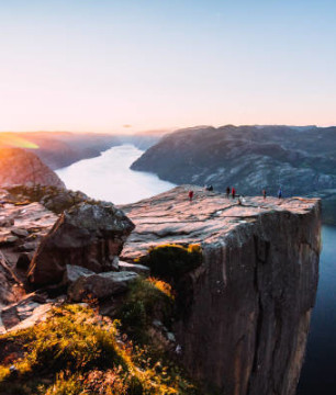 Un púlpito de vértigo¿Qué ocurre cuando restaurantes de estrella Michelin y preciosas casitas de madera se mezclan con arte urbano de nivel internacional y un fantástico ambiente multicultural? Visita Stavanger y encontrarás la respuesta. La ciudad más grande del suroeste de Noruega es el lugar al que acudir para admirar obras maestras de la naturaleza como el fiordo Lysefjord o Preikestolen (la roca del púlpito). La zona costera de Jæren es un verdadero paraíso para los apasionados de la playa, ya que acoge algunos de los arenales más extensos de todo el país. También harán las delicias de los aficionados al surf y al kitesurf. Sigue la carretera del mar del Norte hacia Egersund y descubre numerosos pueblos y aldeas con encanto que brillan como perlas a lo largo de la costa. Un ejemplo es la pintoresca localidad de Sogndalstrand.